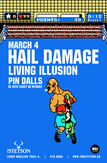 Some friends from back on Vancouver Island whom now live in Calgary show up and looked stocked to see us play; we BS with them for a bit. The Calgary Flames hockey game ends, we get the signal and start to load stuff on stage. We get all our ducks in a row and get ready to start playing. Drums kick in and we begin our first song.